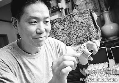 慢功出細活。童洪斌在半粒米大小的象牙片上創(chuàng)作的大熊貓,在去年舉行的武漢市國際文化產業(yè)博洽會上,作為禮物送給外國友人。