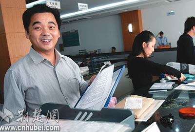 7日,武漢雷泰電力材料有限公司的張紅軍(上圖),僅用20分鐘就在武漢市洪山區(qū)政務(wù)服務(wù)中心辦理完公司的稅務(wù)登記證。他滿臉笑容地說(shuō):“現(xiàn)在辦事方便了,態(tài)度也好了!倍荒昵埃k理同樣一份登記證至少要跑4個(gè)部門,有時(shí)花一星期時(shí)間也不一定能辦妥。