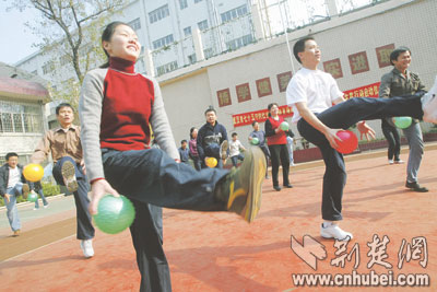 荊楚網(wǎng)(楚天都市報(bào))(記者潘勤實(shí)習(xí)生黃進(jìn) 蕭顥)昨日,江漢區(qū)民意街的晨練居民一大早就走進(jìn)了武漢市七十五中的校園,大家在操場上打拳、跳操、踢球,玩得不亦樂乎。