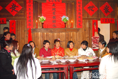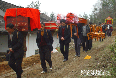 今年1月,該縣文化部門(mén)在采花鄉(xiāng)找到完整的“唐祭儀式”藝人班子。十幾名藝人雖然在解放后都沒(méi)有再進(jìn)行過(guò)“告祖”儀式,但整個(gè)程序記得十分清楚。經(jīng)協(xié)商策劃,決定利用男女雙方實(shí)景把“告祖”及土家婚俗完整真實(shí)拍攝下來(lái)。3月28日,市縣兩級(jí)文化工作專(zhuān)班和十六名民間藝人開(kāi)赴傅家堰火山村,日夜奮戰(zhàn)4天,終于把“告祖”的整個(gè)程序以寫(xiě)實(shí)手法拍攝下來(lái)。同時(shí),還拍攝到了土家婚俗中背新娘、吃雞蛋茶、抬花轎、陪十弟兄、陪十姊妹的珍貴鏡頭,把土家婚俗完整記錄了下來(lái),為項(xiàng)目的申報(bào)工作進(jìn)一步夯實(shí)了基礎(chǔ)。