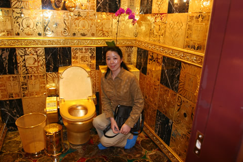 在2002年版的《吉尼斯世界紀(jì)錄》上有著這樣一條記錄:“用錢沖洗――世界上最昂貴的衛(wèi)生間由珠寶商林世榮制造,在他的中國香港商店售價(jià)240萬英鎊。它完全由金子和昂貴的珠寶制成。抽水馬桶、洗臉臺(tái)、刷子、衛(wèi)生紙盒、鏡框、墻上架設(shè)的吊燈、墻上的瓷磚和門全部都由24K黃金構(gòu)成! “這里有一點(diǎn)寫得不對(duì),我的金廁所決不出售,我還要用它來專門注冊(cè)一個(gè)品牌,成為我們企業(yè)的象征!绷质罉s在接受記者采訪時(shí),詳細(xì)地解釋了自己對(duì)“金廁所”的感情。 現(xiàn)任香港恒豐金業(yè)科技集團(tuán)主席的林世榮說:“整個(gè)金廁所都是由我親自設(shè)計(jì)、監(jiān)督制造的,我甚至在工地呆過整整三天三夜沒有出來,可以說是傾注了極大的心血。很多人可能不了解我為什么會(huì)用這么多黃金來建造一個(gè)廁所,其實(shí)我不是為了炫耀,也不是喜歡奢侈浪費(fèi),我是在完成一個(gè)心愿。把土變成金了不起,把金變成土同樣了不起!