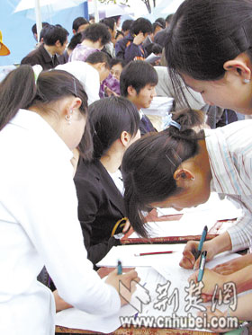 與此同時(shí),全省各地設(shè)立的120多個(gè)分會(huì)場(chǎng),為約50萬(wàn)農(nóng)民工提供了崗位招聘、政策咨詢等服務(wù)。全省4000多個(gè)職業(yè)技能鑒定考場(chǎng)也于昨日開考,為12萬(wàn)名農(nóng)民工進(jìn)行了電焊工、電工、計(jì)算機(jī)、服裝裁剪、鋼筋工等100多個(gè)工種的技能鑒定。