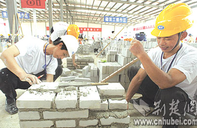 昨日,前往湖北城市建設職業(yè)技術(shù)學院藏龍島校區(qū)參賽的,除了精細木工外,還有砌筑工、鋼筋工和鑲貼工等工種,共114名選手。他們是從全省117萬建筑工人中層層選拔出來的。