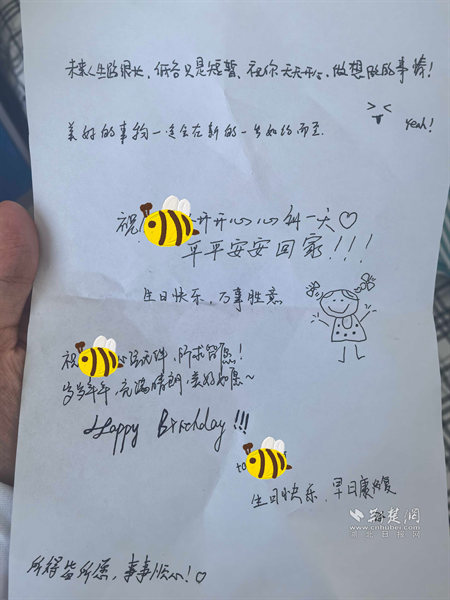 醫(yī)護人員為璐璐寫下的生日祝福。 通訊員供圖