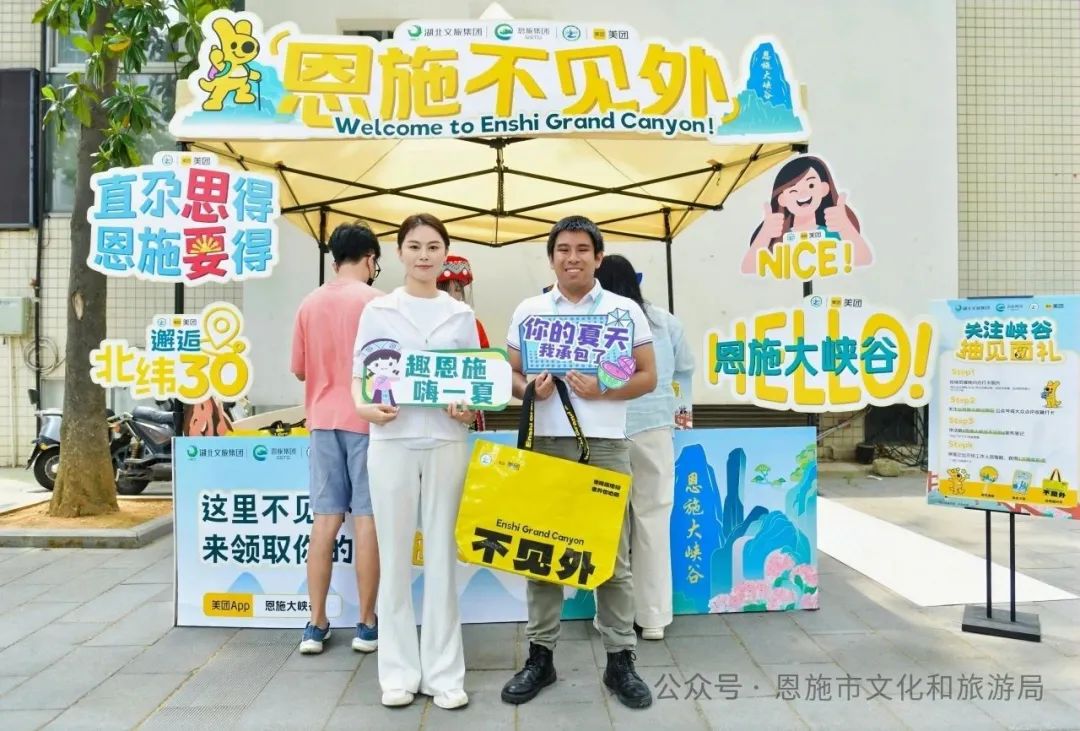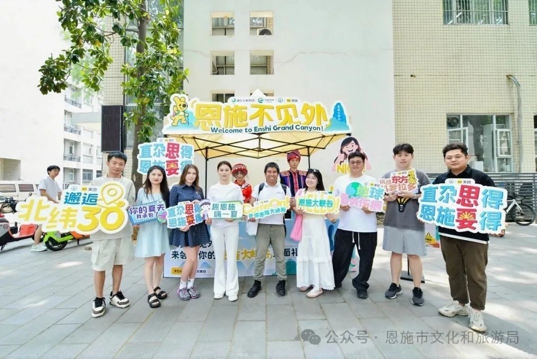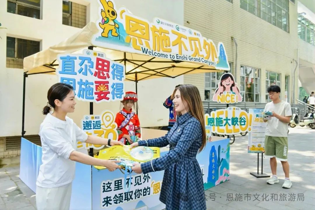 恩施市文化和旅游局主要負(fù)責(zé)人全程參與了活動,并與前來體驗(yàn)快閃互動的外國留學(xué)生親切交談,熱情歡迎他們來恩施旅游,還為他們送上見面禮周邊。留學(xué)生們手持周邊在快閃點(diǎn)位前留下合影,生動詮釋了“恩施熱情不見外”的國際友好活動內(nèi)核,展現(xiàn)了恩施市開放包容的城市形象和對國際游客的熱情歡迎。