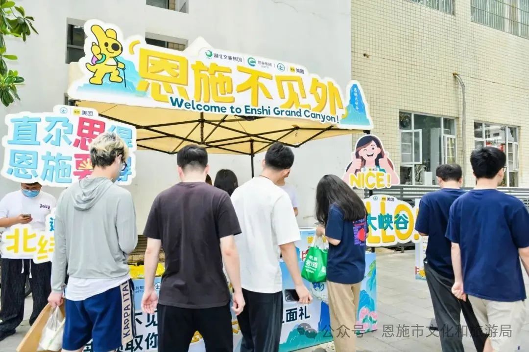活動現(xiàn)場,熱情洋溢的恩施土家族幺哥幺妹手持手舉牌,積極引導(dǎo)互動,吸引了眾多學(xué)子駐足體驗(yàn)。學(xué)子們通過景區(qū)官方社媒打卡抽獎互動,以恩施大峽谷為窗口,深入了解并走近恩施的自然風(fēng)光和土家風(fēng)情。此外,現(xiàn)場派發(fā)的景區(qū)免費(fèi)門票、顯眼編織包、聯(lián)名透扇等“峽谷見面禮”,也迅速點(diǎn)燃了學(xué)子們的參與熱情,讓整個活動現(xiàn)場充滿了青春活力與歡樂氛圍。
