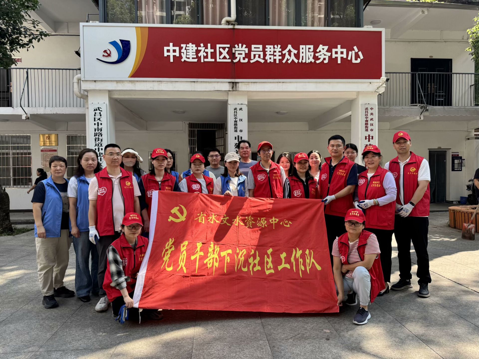 圖:2025年5月30日湖北水文中心黨員下沉社區(qū)清潔家園后合影
