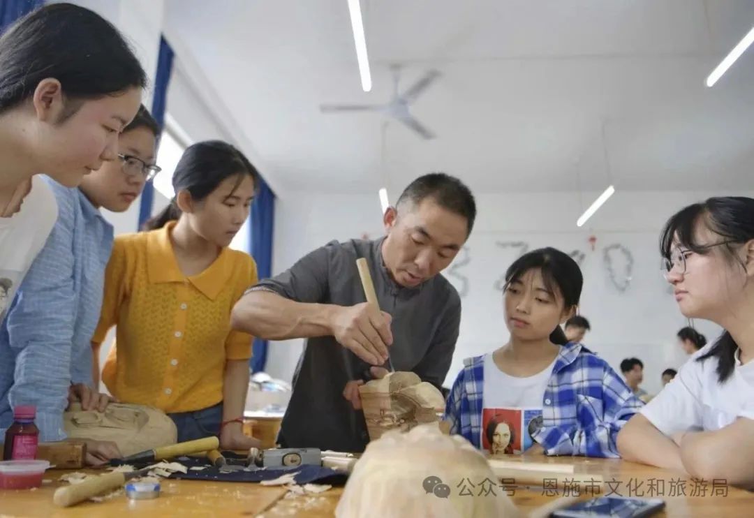 深化傳承人培養(yǎng),建立校地協(xié)同培養(yǎng)機(jī)制。支持、鼓勵(lì)非遺代表性傳承人先后在恩施職院、六角亭街道逸夫小學(xué)、芭蕉侗族鄉(xiāng)民族初中、崔壩鎮(zhèn)小學(xué)等20余所學(xué)校開展“恩施玉露制作技藝”“恩施板凳龍”“剪紙”“竹編”等非遺項(xiàng)目進(jìn)校園工作。