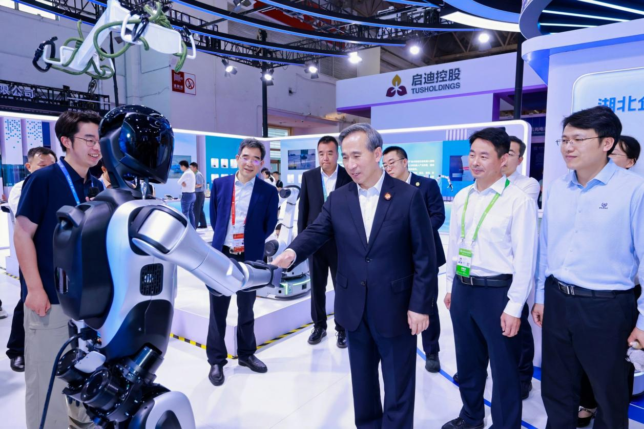 任鴻斌首先來到武漢格藍若公司展臺,觀看“勞動者”系列機器人演示,與機器人握手互動,仔細詢問了機器人的負載能力與環(huán)境適應性能。在武漢光谷華匯科技展臺,他察看了“楚寶”系列機器人摔倒爬起等運動動作,了解其在安防巡邏、應急救援等場景的應用情況。在“荊楚 1 號” 機器人展臺,他聽取了荊楚機器人的應用場景和量產(chǎn)進展介紹,對其獨特的全絲杠驅動技術給予贊賞,強調要發(fā)揮院士團隊引領作用,加快科研成果產(chǎn)業(yè)化落地。