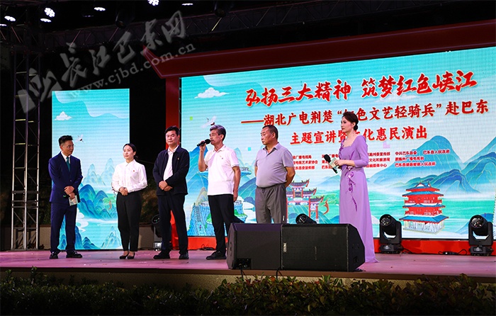 弘揚“三大精神”,筑夢紅色峽江。7月17日,湖北廣電荊楚“紅色文藝輕騎兵”主題宣講和文化惠民活動走進巴東,以鮮活的文藝形式、接地氣的宣講方式,宣傳黨的創(chuàng)新理論,把優(yōu)質(zhì)文化產(chǎn)品和服務送到百姓身邊。