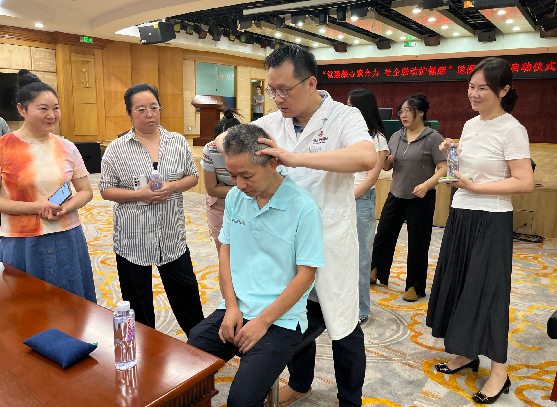 簽約儀式后,備受期待的義診活動隨即展開。湖北省中醫(yī)院汪新華副主任醫(yī)師率領(lǐng)東湖社區(qū)衛(wèi)生服務(wù)站的醫(yī)護團隊,為企業(yè)職工帶來了專業(yè)、貼心的健康服務(wù)。義診臺前,醫(yī)護人員細致地為職工們測量血壓、血糖,通過傳統(tǒng)中醫(yī)“望聞問切”進行體質(zhì)辨識,并針對個體情況提供個性化的健康咨詢和敷貼服務(wù),現(xiàn)場互動踴躍,好評不斷。
