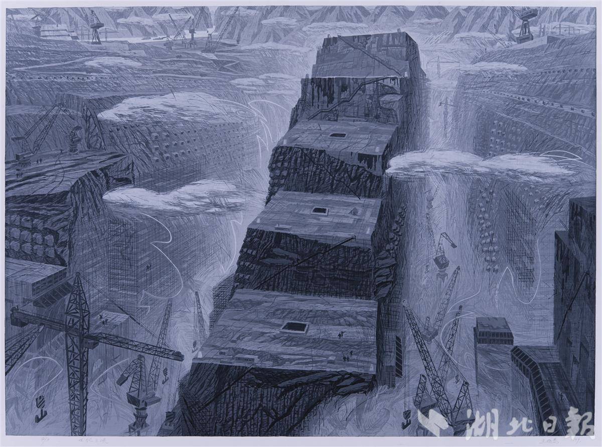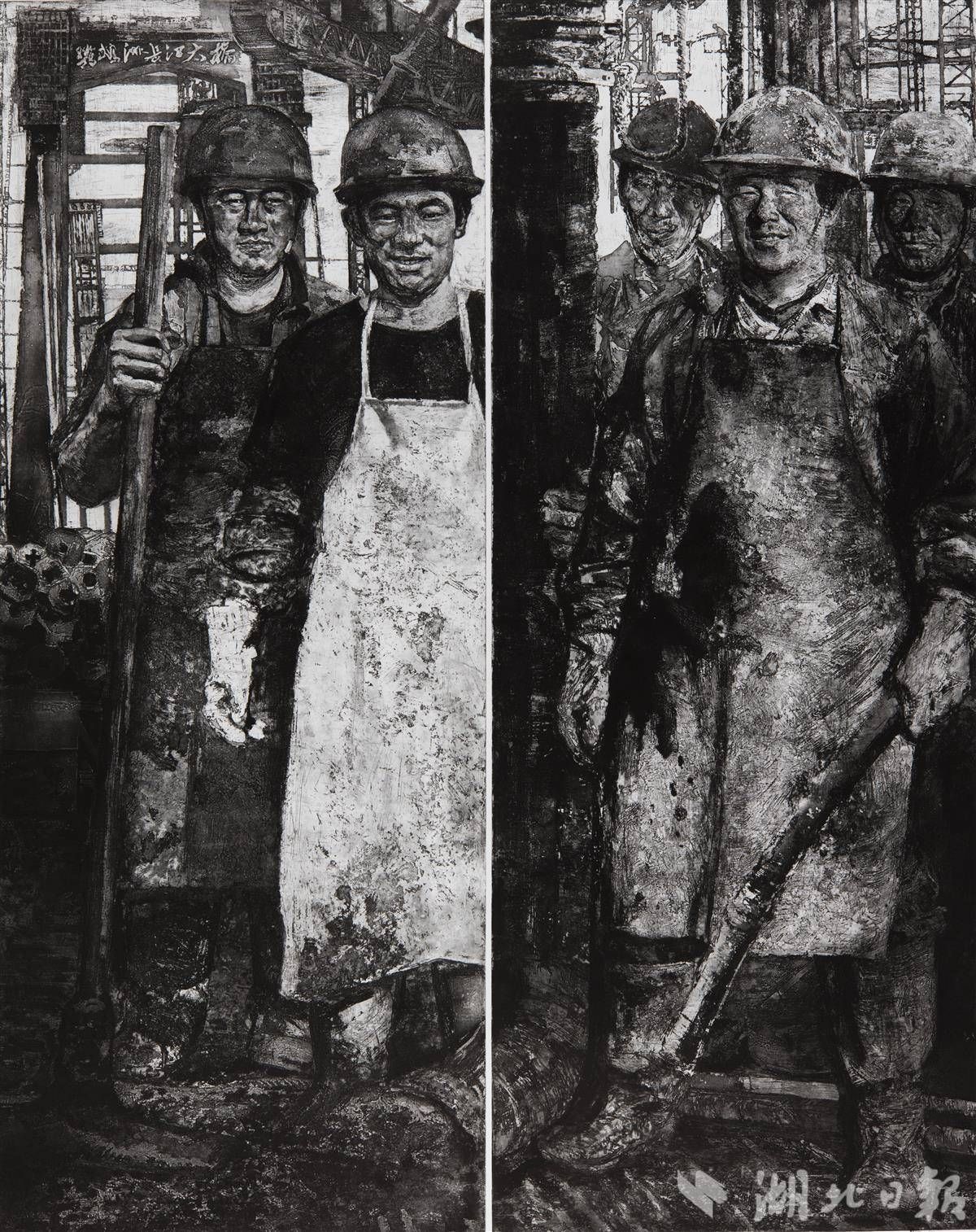 曹丹《陽(yáng)光下的大橋澆筑工》銅版