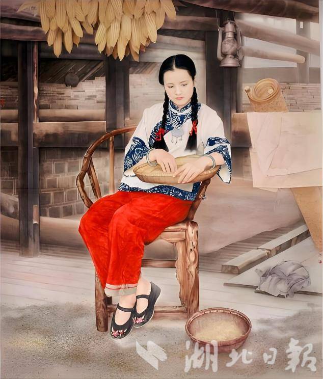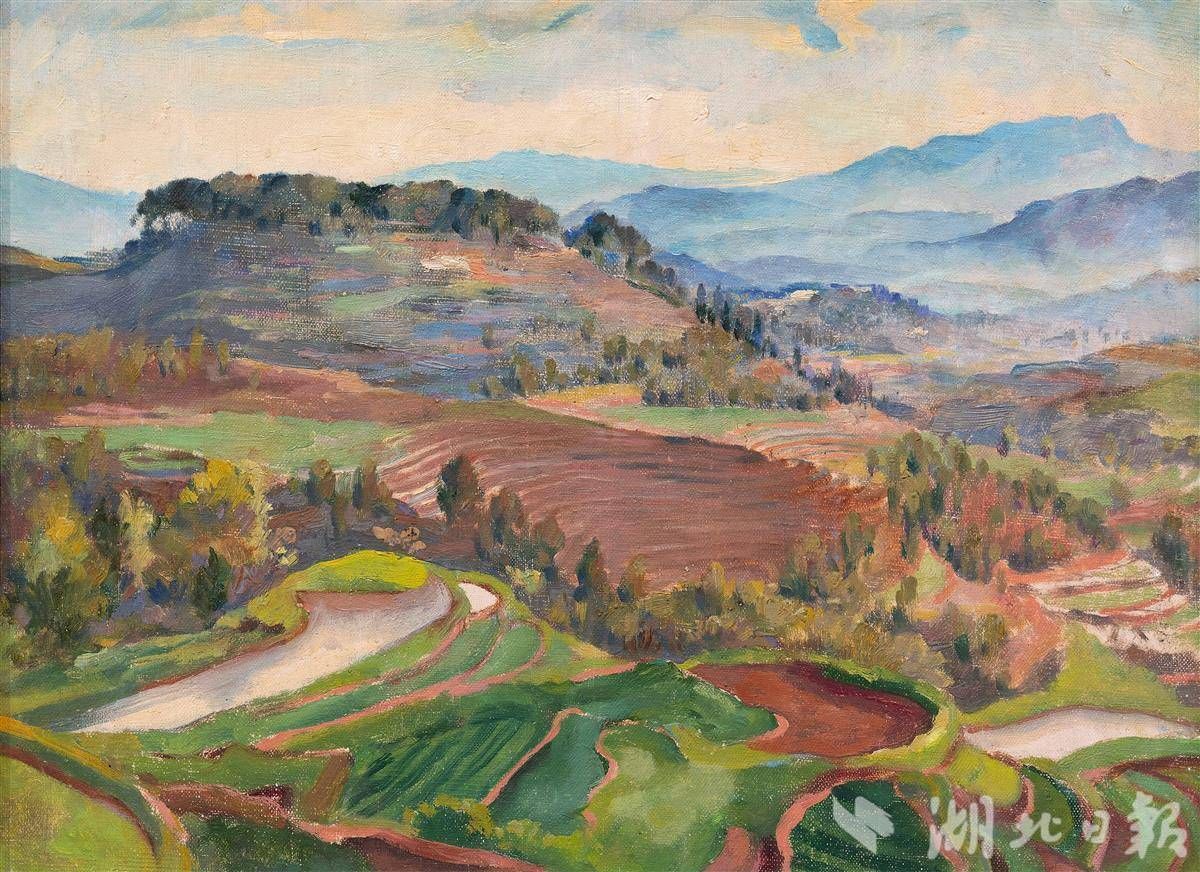 步入展廳,一幅幅美術(shù)史上的經(jīng)典作品及其描繪的美麗荊楚撲面而來(lái)。其中,湖北美術(shù)界前輩唐一禾創(chuàng)作的《江津?qū)懮弧访枥L了江津德感壩五十三梯的自然風(fēng)光,以細(xì)膩的筆觸勾勒出梯田如織、遠(yuǎn)山如黛的景象,層次分明、渾然天成。湯文選創(chuàng)作的《婆媳上冬學(xué)》表現(xiàn)婆媳二人在一個(gè)風(fēng)雪交加的傍晚相互攙扶趕去學(xué)文化的場(chǎng)景。李乃蔚《銀鎖》是深入鄂西農(nóng)村生活創(chuàng)作的佳作,描繪佩戴銀鎖的土家族少女形象,將中國(guó)畫寫實(shí)技巧推向新高度。此外,王曉愚作品《世紀(jì)三峽》、曹丹作品《陽(yáng)光下的大橋澆筑工》等全國(guó)美展大獎(jiǎng)作品也集中展示。