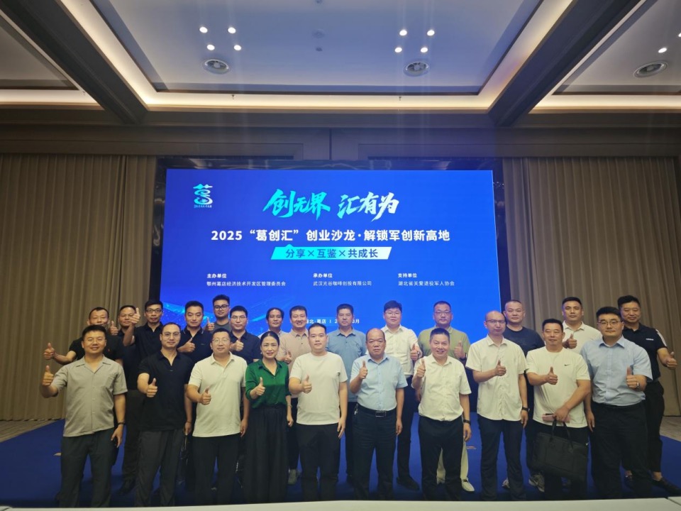 為深入貫徹湖北省創(chuàng)新驅(qū)動發(fā)展戰(zhàn)略,優(yōu)化葛店開發(fā)區(qū)創(chuàng)新創(chuàng)業(yè)環(huán)境,8月15日,由鄂州葛店經(jīng)濟(jì)技術(shù)開發(fā)區(qū)管理委員會主辦、武漢光谷咖啡創(chuàng)投有限公司承辦、湖北省關(guān)愛退役軍人協(xié)會支持的2025“葛創(chuàng)匯”創(chuàng)業(yè)沙龍軍創(chuàng)專場活動在鄂州葛店國家經(jīng)濟(jì)技術(shù)開發(fā)區(qū)招商展示中心成功舉辦。來自政府、軍創(chuàng)企業(yè)、投融資機(jī)構(gòu)及媒體的50余位嘉賓齊聚一堂,以“創(chuàng)無界 匯有為”為主題,共話退役軍人創(chuàng)業(yè)創(chuàng)新,共謀葛店高質(zhì)量發(fā)展新篇章。