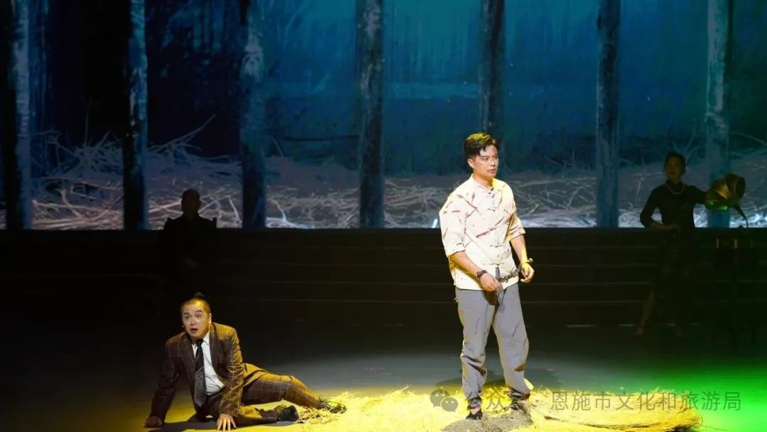 此次參加演出的演員們來自恩施市文化生態(tài)和非遺保護(hù)中心的中、青年演員,從歌手、舞蹈演員到舞臺(tái)劇演員,他們反復(fù)斟酌每一個(gè)人物角色。排練期間,針對每一句臺(tái)詞的情緒、眼神,反復(fù)討論練習(xí),實(shí)現(xiàn)了從舞臺(tái)到歷史現(xiàn)場的跨越。歌手出身的男主角舒毅為精準(zhǔn)呈現(xiàn)何功偉就義前的步伐,拖著數(shù)公斤鐵鏈反復(fù)體會(huì)行走姿態(tài),最終在舞臺(tái)上完成“100級(jí)臺(tái)階無一聲回應(yīng)”的經(jīng)典場景,引發(fā)現(xiàn)場觀眾和線上網(wǎng)友無數(shù)次落淚。
