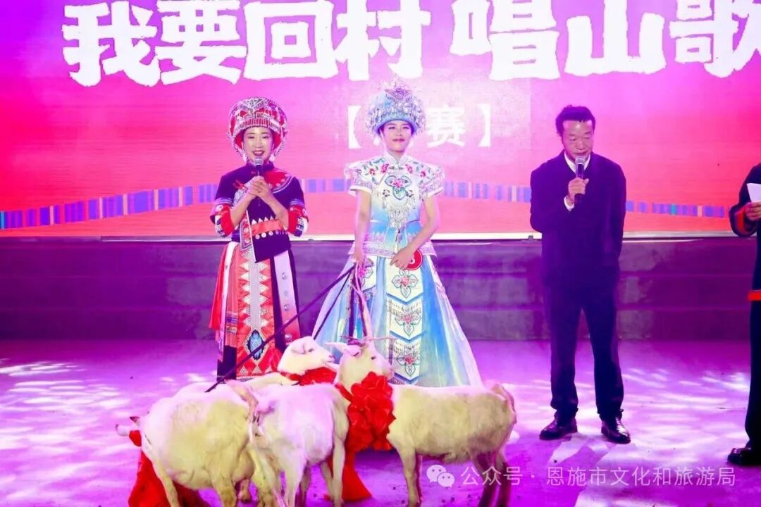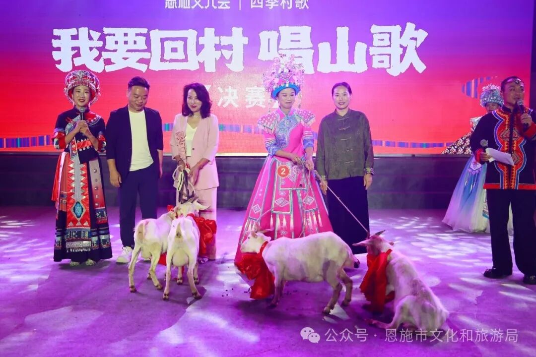 經(jīng)過(guò)數(shù)輪激烈緊張的比拼,來(lái)自紅土鄉(xiāng)的本土歌手黃萍憑借出色的表現(xiàn)獲得2025恩施女兒會(huì)“我要回村唱山歌”冠軍,成為名副其實(shí)的“歌王”,贏得山羊5只;芭蕉侗族鄉(xiāng)梁偲、硒都大舞臺(tái)小春兩名選手獲得亞軍,分別贏得山羊2只。新塘鄉(xiāng)火姐姐、沙地鄉(xiāng)沙地州、硒都大舞臺(tái)小花三名選手獲得季軍,分別贏得山羊1只。