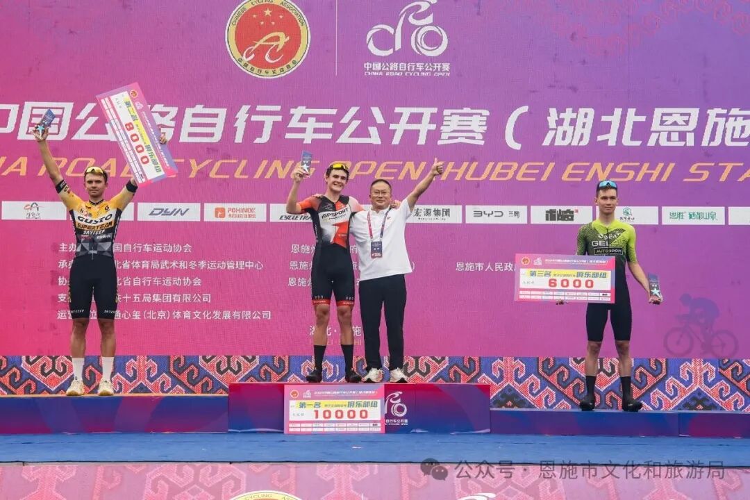 2025年中國公路自行車賽(湖北恩施站)第一賽段所有比賽圓滿結(jié)束,經(jīng)過激烈角逐,跡馳-瑞豹車隊獲得俱樂部組團體積分第一名,來自跡馳-瑞豹車隊的VLADISLAY SOZINOV最終憑借強勁的沖刺能力摘得桂冠,被授予白衫,來自GUSTO SUPERTEAM車隊的VITALII和重慶南岸風(fēng)騎捷安特車隊的BLOKHIN IVAN 分獲二、三名;男子精英組、大學(xué)生組、青少年組及女子精英組冠軍分別由來自恒宇單車的馮浩然、任中昊、DYC-晟亦青訓(xùn)選手方宇軒和Bigrock大石魅騎廠隊張婷婷獲得。