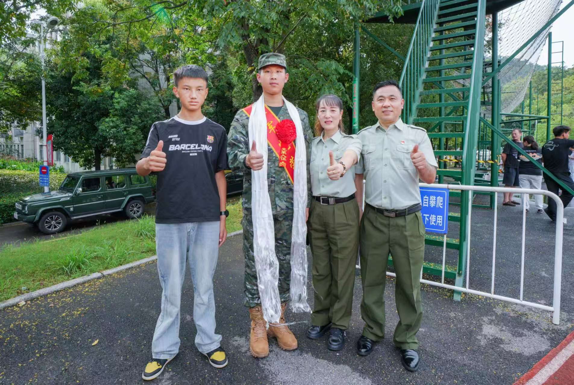歡送儀式上,19歲新兵趙祥緣的“送行團”格外引人注目:身著舊軍裝的退役軍人父母、專程從河南趕來的祖輩親人,以及一位來自西藏的“弟弟”,組成強大的“親友團”,送上臨行前的叮囑與祝福。趙祥緣的父母均為退役軍人,父親趙紅軍曾服役于狼牙山五壯士所在的英雄部隊紅一師,軍裝雖已卸下,軍人本色卻從未褪色?!拔覀兗腋筷犛芯?,我們夫妻倆曾在部隊服役20年,如今祥緣接過接力棒,是全家的驕傲!”趙紅軍話語鏗鏘,身旁的妻子眼眶泛紅,卻難掩自豪。