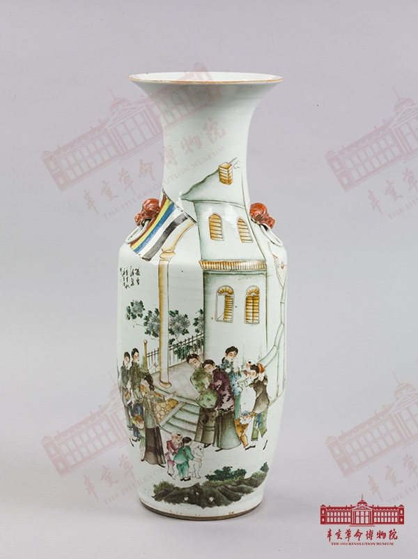 在辛亥革命博物院的展廳里,一件民國(guó)粉彩五色旗新時(shí)裝人物圖詩(shī)文獅耳撣瓶總能吸引不少參觀者駐足。這是典型的民國(guó)時(shí)期景德鎮(zhèn)窯制品,撇口處描金細(xì)膩精致,獅耳紋飾鮮活靈動(dòng),瓶身踏春圖景里,人物衣著巧妙融合傳統(tǒng)紋樣與當(dāng)時(shí)新風(fēng)尚,洪步余先生于瓶身題寫的“最愛晴和春景好,勸邀同伴踏春回”,墨色飽滿厚重。武昌的槍聲擊碎了封建帝制的枷鎖,這件撣瓶正是那個(gè)變革時(shí)代的“見證者”。辛亥革命之后,中國(guó)不僅迎來政治制度的新生,人們的思想與生活也踏上革新之路,彼時(shí)的中國(guó)正帶著這份勇氣,以開放姿態(tài)嘗試融入世界發(fā)展潮流。