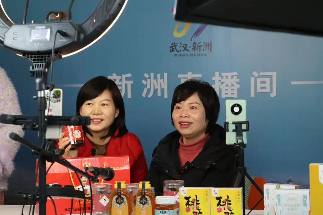 △武漢市新洲區(qū)網(wǎng)絡(luò)人士聯(lián)誼會婦聯(lián)在區(qū)電商孵化基地開展巾幗電商培訓(xùn),執(zhí)委靖響林在直播間指導(dǎo)新農(nóng)人孫燕妮實操演練。