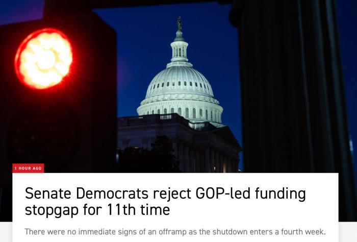 據(jù)報道,當?shù)貢r間10月20日,美國參議院第11次就政府撥款法案進行投票表決,仍未獲得通過,因此美國政府自10月1日開始的“停擺”繼續(xù)。