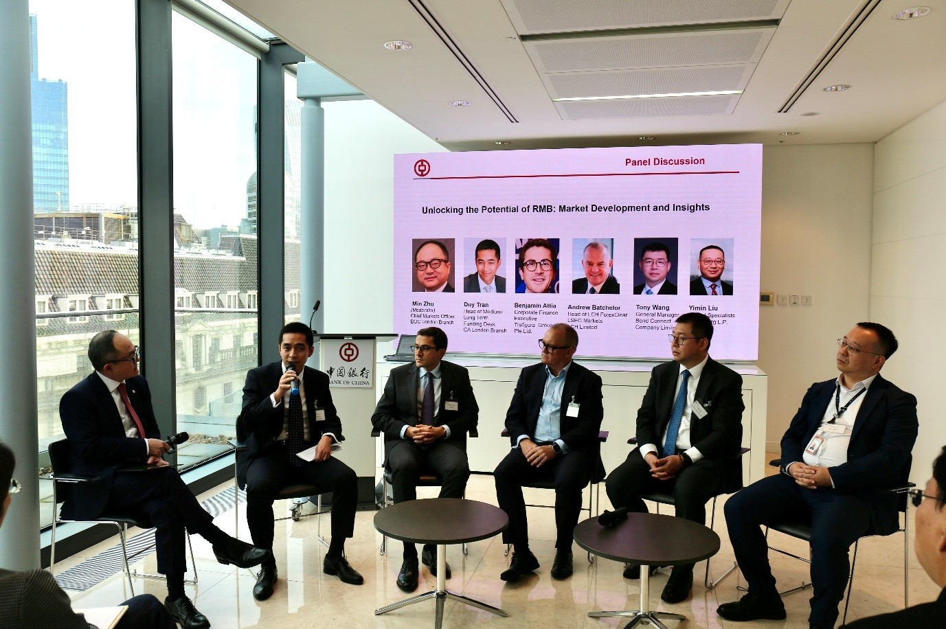 本次活動是中國銀行2025年人民幣國際化全球系列推廣活動的重要一站,旨在進(jìn)一步推動人民幣在跨境貿(mào)易與國際投融資中的使用,深化中英及歐洲地區(qū)金融合作?;顒蝇F(xiàn)場,與會代表圍繞人民幣在跨境支付清算、貿(mào)易結(jié)算、投融資服務(wù)、外匯交易與風(fēng)險管理、債券融資等領(lǐng)域的應(yīng)用展開深入交流,并分享人民幣市場發(fā)展趨勢、金融基礎(chǔ)設(shè)施合作與產(chǎn)品創(chuàng)新最新進(jìn)展。