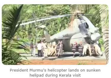 中新網(wǎng)10月22日電 據(jù)《印度時(shí)報(bào)》報(bào)道,印度總統(tǒng)穆爾穆于當(dāng)?shù)貢r(shí)間21日開啟對(duì)印度南部喀拉拉邦為期四天的正式訪問。22日,其乘坐的直升機(jī)在降落至當(dāng)?shù)匾惑w育場的直升機(jī)坪時(shí)發(fā)生意外,部分地面在機(jī)輪觸地后突然下陷。