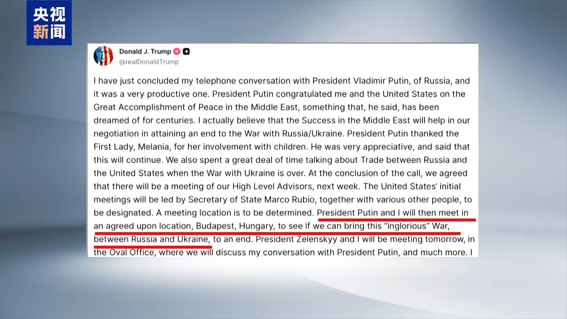 美國總統(tǒng)特朗普16日曾在社交媒體上發(fā)文說,他將與普京在布達佩斯舉行面對面會晤。但他沒有提及兩人會晤的具體日期。