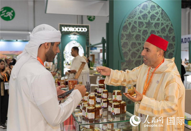| 嘉賓品嘗摩洛哥蜂蜜。人民網(wǎng) 塔里克·易卜拉辛攝 |