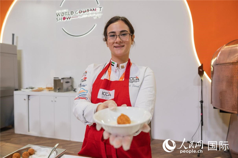 | 一名廚師展示現(xiàn)做肉丸。人民網(wǎng) 塔里克·易卜拉辛攝 |