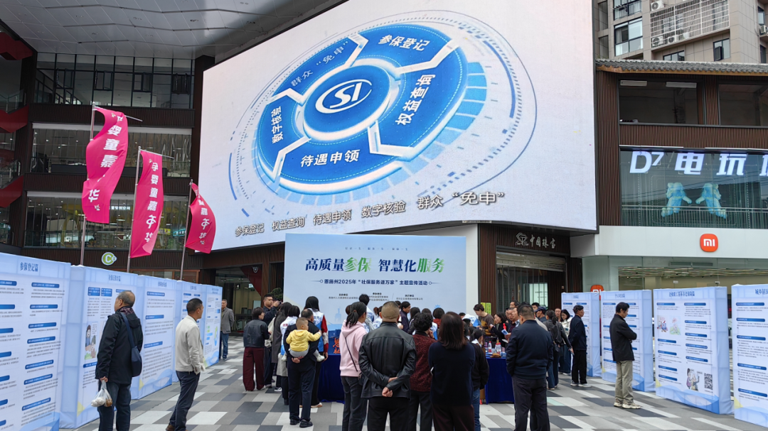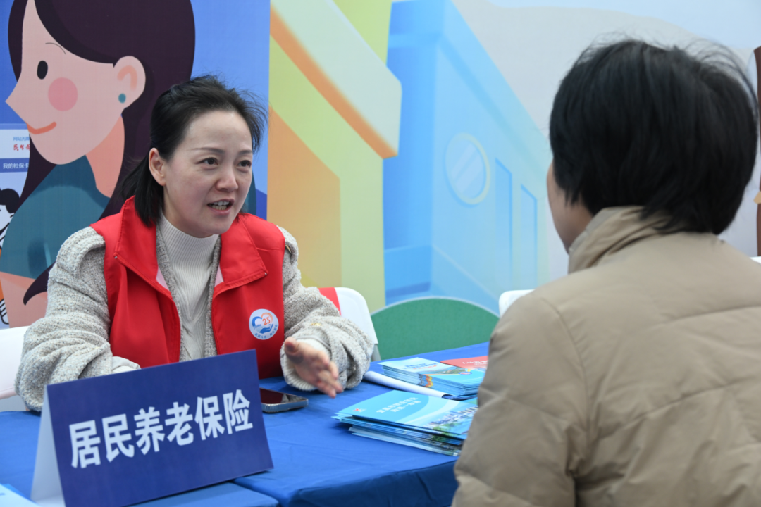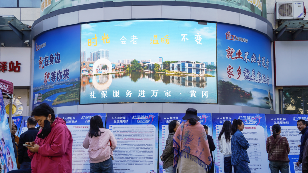 黃岡市“社保服務(wù)進(jìn)萬(wàn)家”活動(dòng)現(xiàn)場(chǎng),群眾在社保政策宣傳展板前駐足觀看。