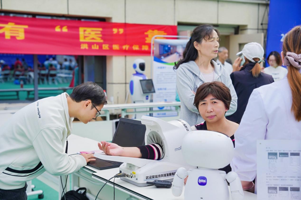 10月28日,“九九重陽?律動荊楚”湖北社體全民健身主題活動在梨園街綜合養(yǎng)老服務中心舉行?;顒佑珊笔∩鐣w育管理中心、武漢市洪山區(qū)體育局、梨園街道辦事處聯(lián)合主辦,湖北省社會體育指導員協(xié)會、湖北省健身舞協(xié)會、華中科技大學同濟醫(yī)學院附屬梨園醫(yī)院、梨園街道綜合養(yǎng)老服務中心承辦,湖北省衛(wèi)生健康宣傳教育中心、武漢市洪山區(qū)衛(wèi)生健康局、武漢市洪山區(qū)醫(yī)療保障局等單位支持。活動現場,東湖社區(qū)、歡樂星城社區(qū)、武鐵佳苑社區(qū)等十余支隊伍帶來太極扇、廣場舞、瑜伽、柔力球及八段錦展演,老年群體以昂揚姿態(tài)展現健康風采。展演結束后,五名世界級運動冠軍現場指導科學健身技巧,帶動全民參與熱情?;顒油皆O置便民集市,梨園醫(yī)院與湖北省中醫(yī)院專家團隊提供免費義診,AI科技互動展區(qū)通過科技互動展示智慧養(yǎng)老新場景、“套圈贏好禮”等趣味游戲讓老人樂在其中,現場洋溢歡聲笑語。
