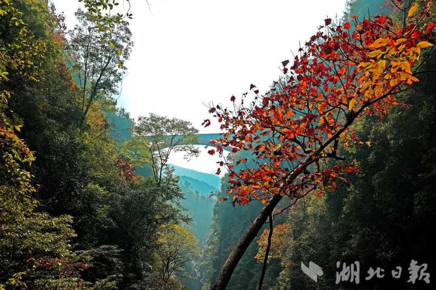 秋光正好,蝶舞清江·地心谷景區(qū)進(jìn)入一年中最富詩意的季節(jié)。峽谷兩岸層林盡染,赭紅、金黃與墨綠交織,構(gòu)成一幅流動(dòng)的山水長卷。谷內(nèi)溫度宜人,溪流清冽,瀑布飛懸,空氣中富含負(fù)氧離子,是放松身心、親近自然的絕佳場所。