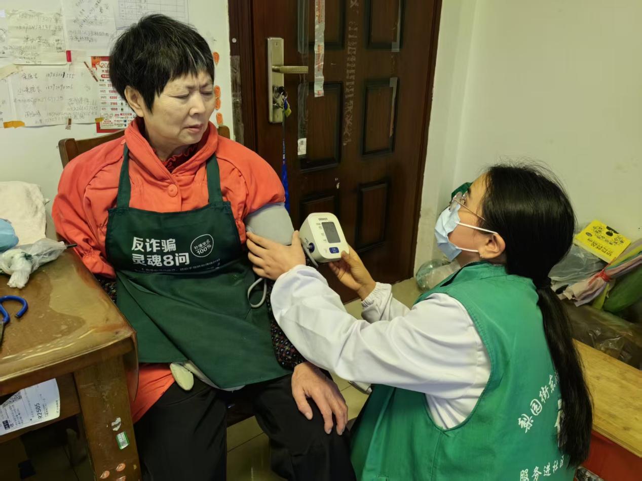 重陽(yáng)節(jié)當(dāng)日下午,服務(wù)團(tuán)隊(duì)走進(jìn)東沙花園社區(qū)低保戶邱婆婆家中。邱婆婆因?yàn)樵缒暌馔廛嚨?,?dǎo)致時(shí)長(zhǎng)精神性疼痛直不起腰,街道特別組建"3+1"幫扶小組:家庭醫(yī)生每月上門體檢、民政專員對(duì)接輔具租賃、助老員傳授護(hù)理技巧。