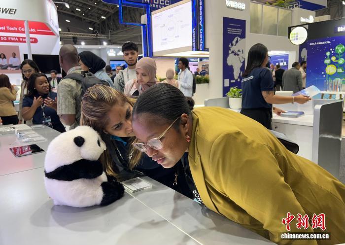當?shù)貢r間11月11日,第28屆非洲科技節(jié)在南非開普敦開幕。圖為與會嘉賓在中國企業(yè)展區(qū)了解接入人工智能系統(tǒng)的毛絨玩具。 中新社記者 孫翔 攝