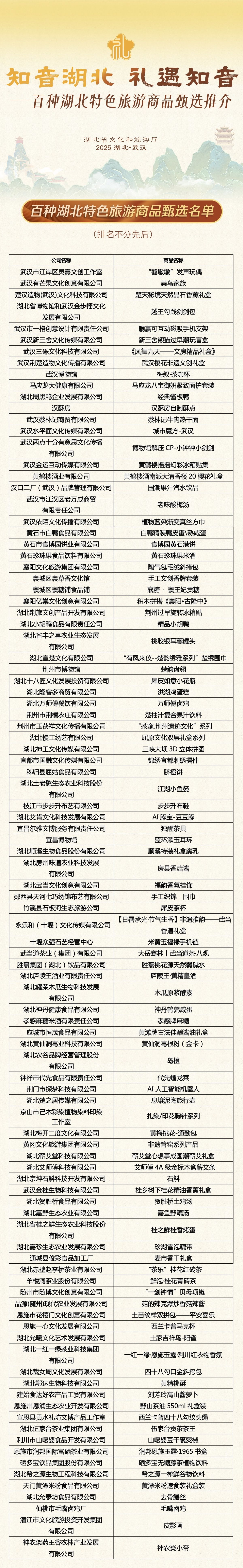 據(jù)悉,此次揭曉的百種商品將通過電商專區(qū)、景區(qū)專柜、文創(chuàng)精品店等多元渠道推向市場,為即將到來的元旦、春節(jié)旅游消費季預熱。這些商品既是湖北文旅的“移動名片”,更是推動文旅商產深度融合的重要載體。