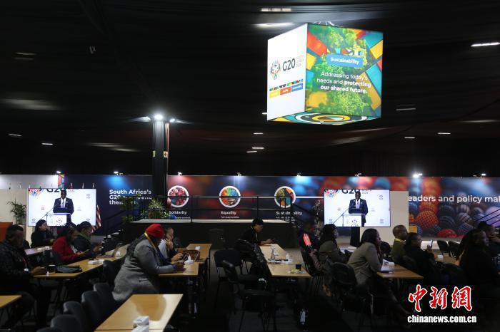 當?shù)貢r間11月17日,南非在約翰內(nèi)斯堡展覽中心(NASREC)召開媒體簡報會,介紹二十國集團(G20)領(lǐng)導(dǎo)人峰會籌備進展?!≈行律缬浾?孫翔 攝