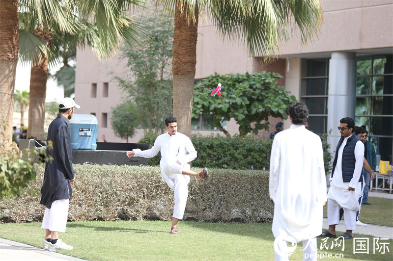沙特學(xué)生在活動現(xiàn)場體驗(yàn)踢毽子。人民網(wǎng)記者 任皓宇攝