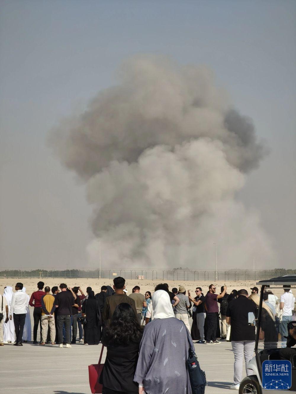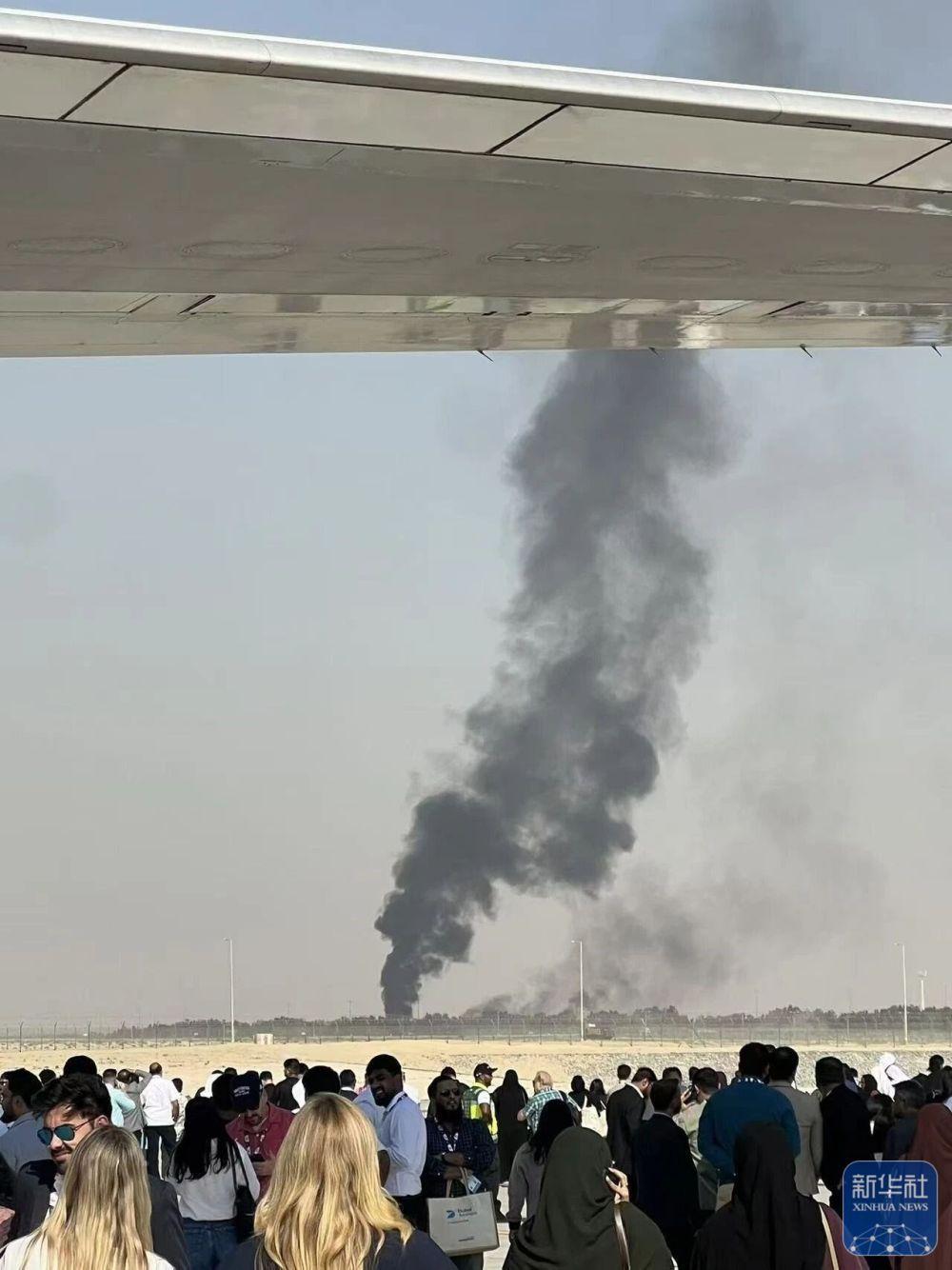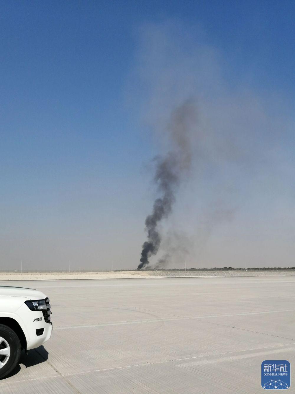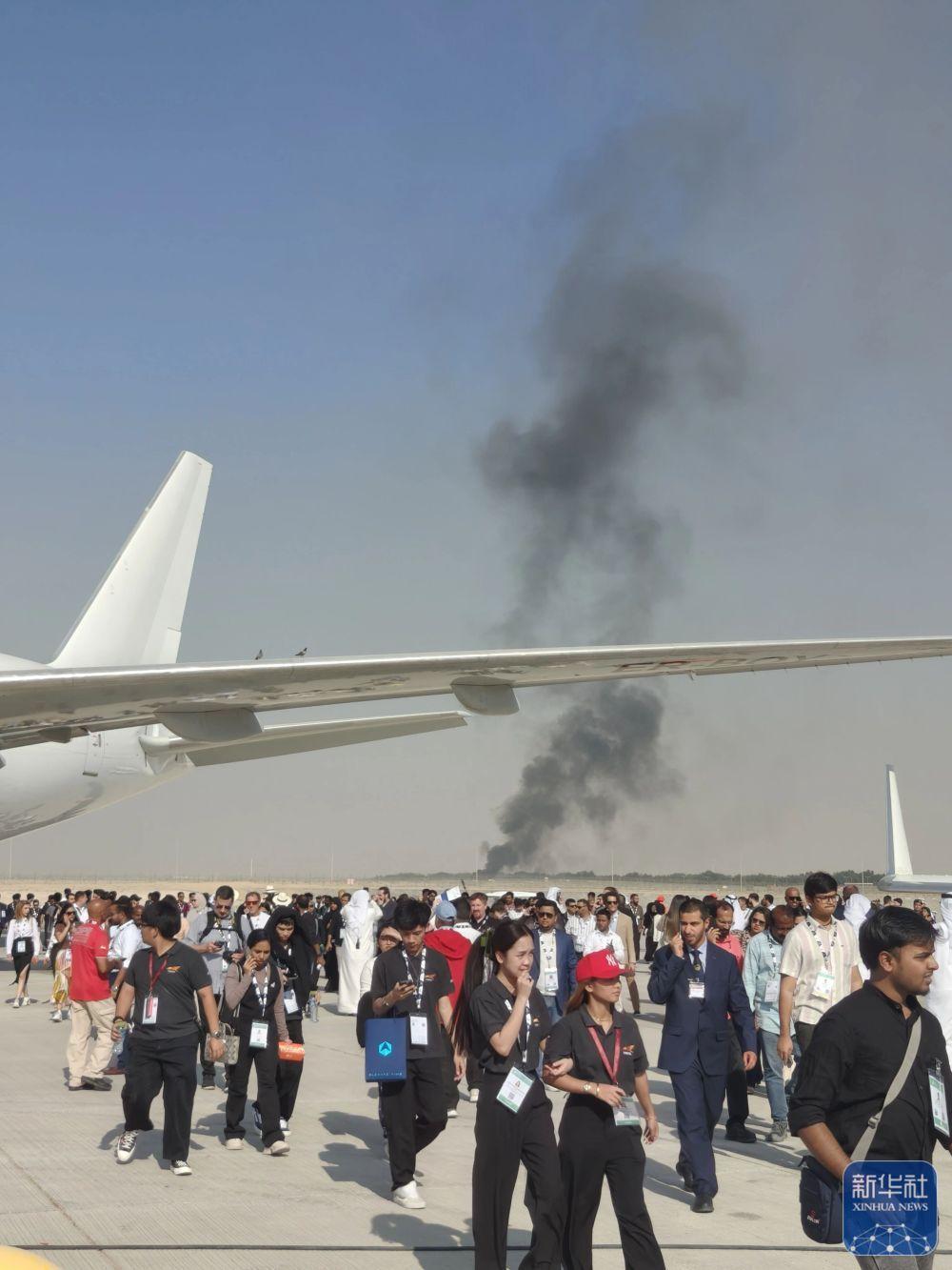 11月21日,在阿聯(lián)酋迪拜,飛機墜毀現(xiàn)場冒出滾滾濃煙。