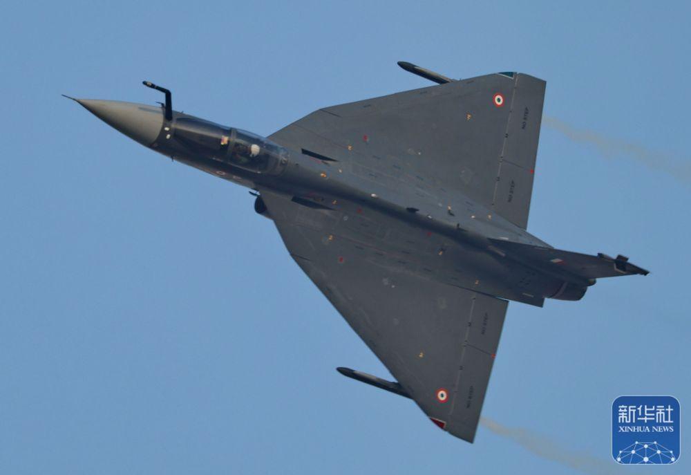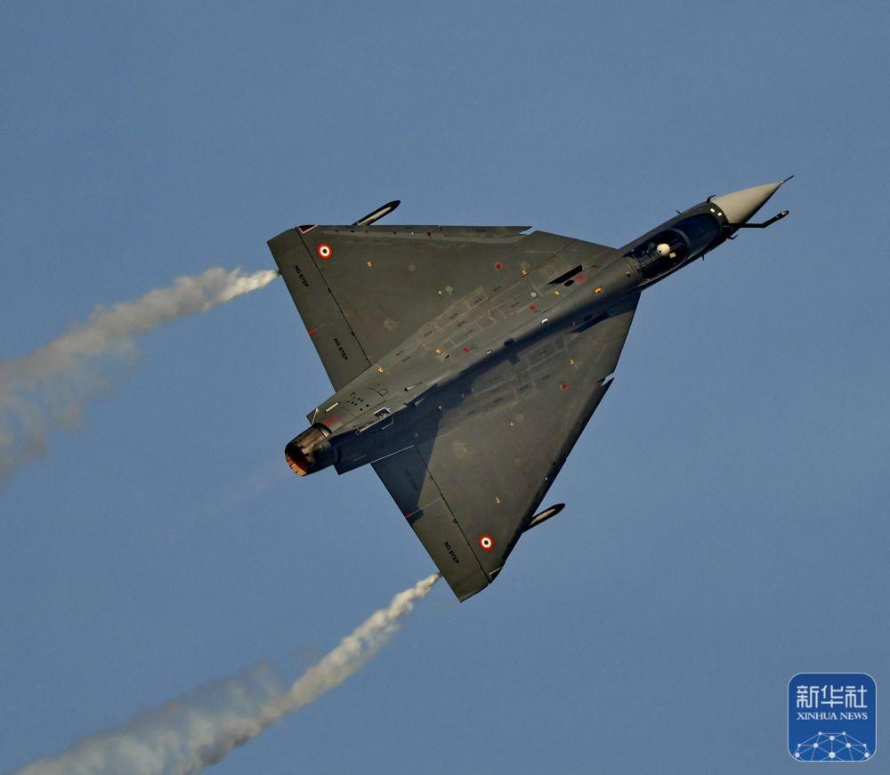 這是11月17日在阿聯(lián)酋迪拜航展拍攝的印度“光輝”戰(zhàn)斗機。