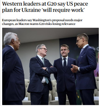 中新網(wǎng)11月23日電 據(jù)英國《衛(wèi)報》報道,當?shù)貢r間22日,歐洲理事會、歐盟委員會、德國、法國、加拿大、愛爾蘭、意大利、西班牙、荷蘭、英國、挪威、芬蘭等多方發(fā)表聯(lián)合聲明,認為美方就結(jié)束烏克蘭危機提出的“28點”新計劃可以作為基礎(chǔ),但仍需要額外的工作。