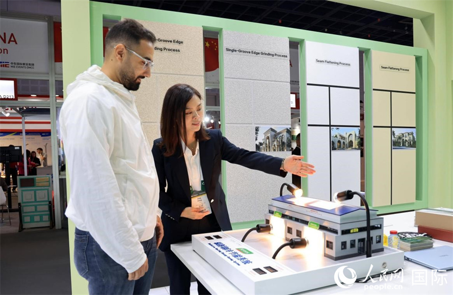 參展中企三棵樹介紹輻射制冷節(jié)能涂料。人民網(wǎng)記者 管克江攝