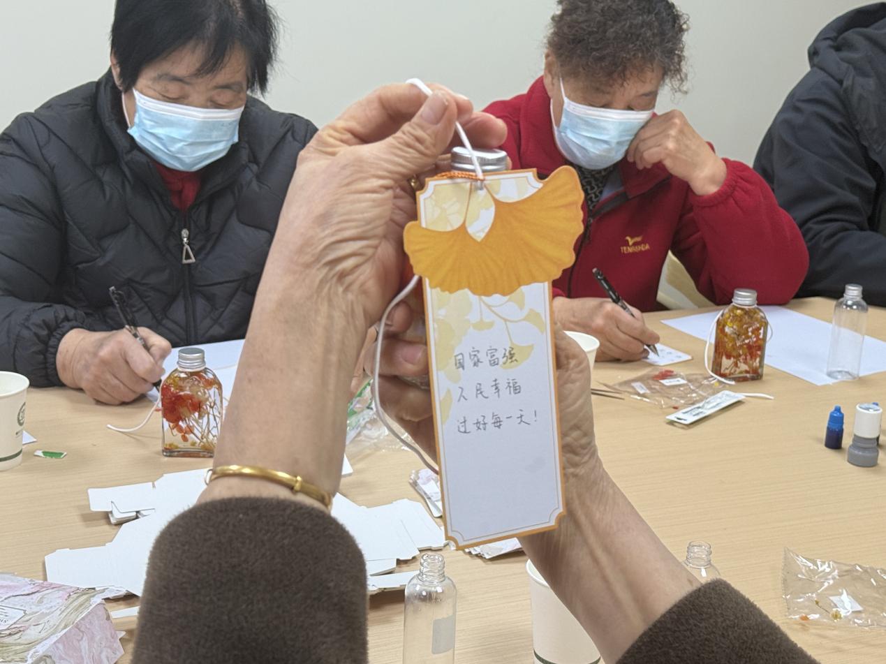 活動注重多維感官體驗與情感表達?!肮庵敢杯h(huán)節(jié)中,經典詩句“如果冬天來了,春天還會遠嗎?”的深情朗誦,與畫面中由暗漸明的曙光影像交織,直觀地喚醒心中的樂觀與期待。備受喜愛的“希望許愿瓶”制作,則提供了一個將抽象情感具象化的藝術創(chuàng)作過程。居民們在輕柔音樂中書寫微小而具體的愿望,與象征時間與美好的干花一同封存,不僅創(chuàng)造了獨特的紀念品,更完成了一次賦予期盼以形態(tài)和儀式感的積極心理行動。
