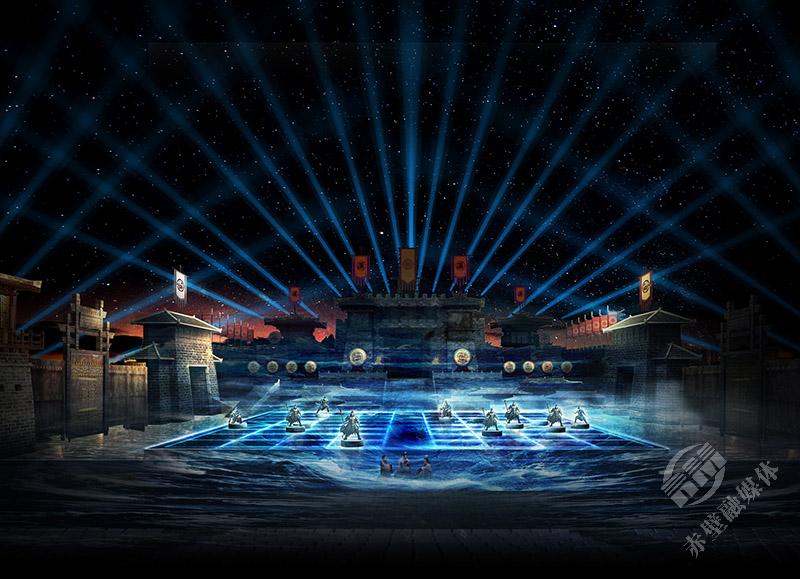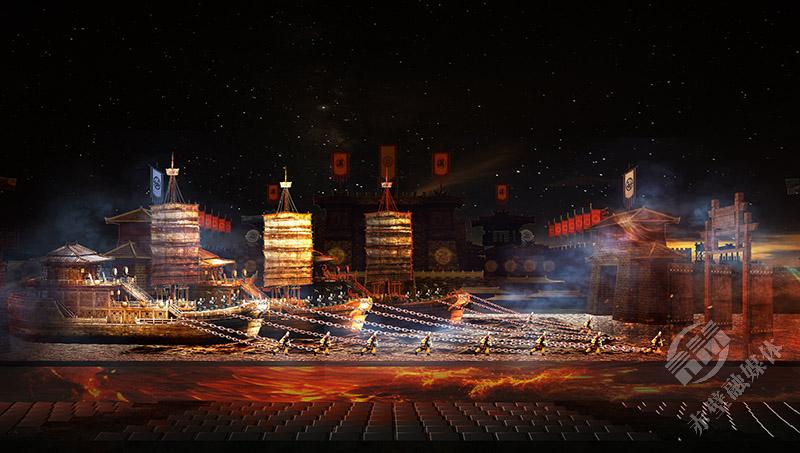 2000多年前,諸葛亮借的東風(fēng),是摧枯拉朽、克敵制勝的戰(zhàn)火雄風(fēng);2000多年后,三國赤壁古戰(zhàn)場借的東風(fēng),則是凝心聚氣、砥礪奮進(jìn)的時代之風(fēng)。演出將赤壁之戰(zhàn)這盤歷史大棋置于天地之間,以三國群雄為弈者,以演員和觀眾為棋子,利用光影特效與舞美裝置的變換,將戰(zhàn)役的多個關(guān)鍵情節(jié)進(jìn)行藝術(shù)化提煉與重構(gòu),運用聲、光、電等現(xiàn)代舞美技術(shù),將歷史與現(xiàn)實、虛擬與真實融為一體,構(gòu)建起一個戰(zhàn)火紛飛、羽箭穿空的三國世界,讓赤壁之戰(zhàn)從史書中的符號躍升為可觸摸、可參與的精神場域。