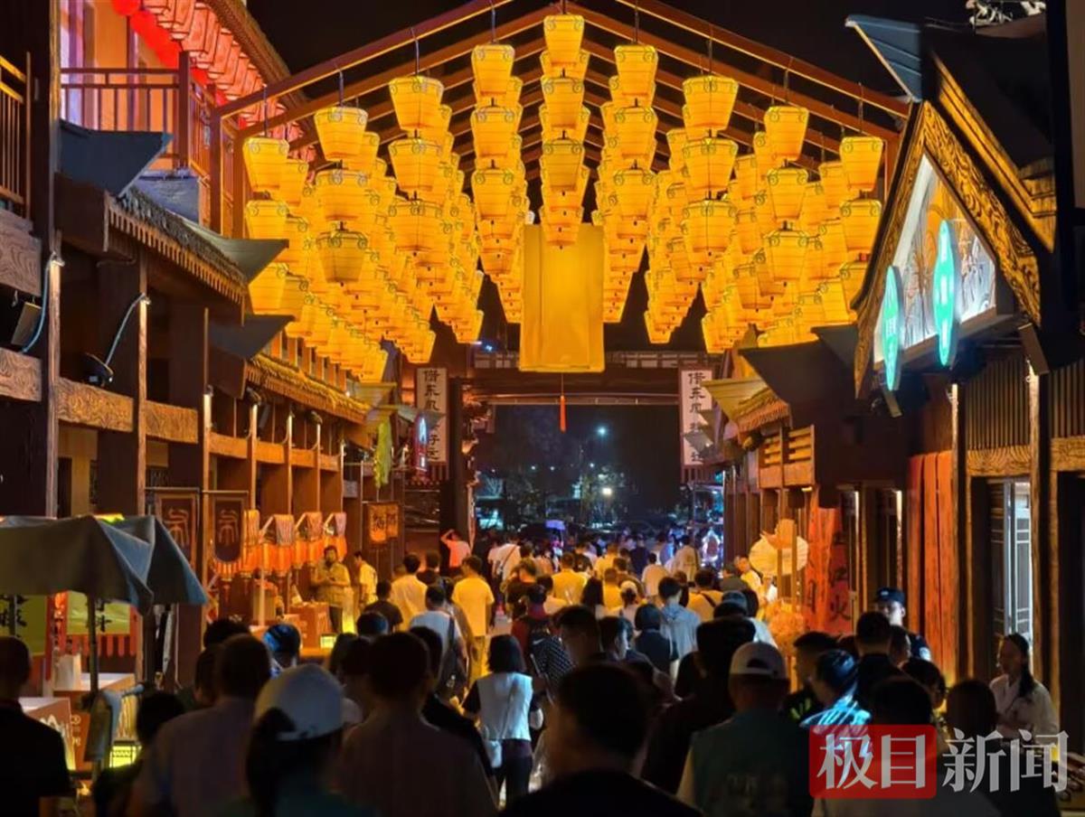 新落成的東風商業(yè)街,既是對“借東風”典故的現(xiàn)代化演繹,更構建起連接古今的商業(yè)生態(tài)——青磚灰瓦間穿插著漢服體驗館,傳統(tǒng)茶肆與文創(chuàng)工坊比鄰而居,形成文化消費的完整閉環(huán)。全新打造的東風商業(yè)街不僅匯聚了各種特色美食、文創(chuàng)產品,更以三國文化為主題進行了精心的場景營造。漫步其中,仿佛穿越時空,與古人共赴一場熱鬧的集市。