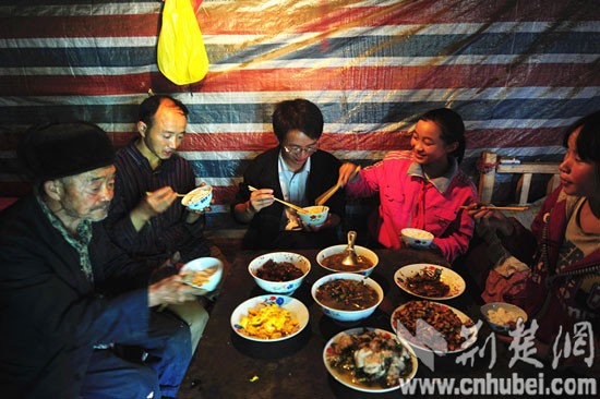 滿滿盛上一碗苞谷飯,羅歡接過,情意滿滿。