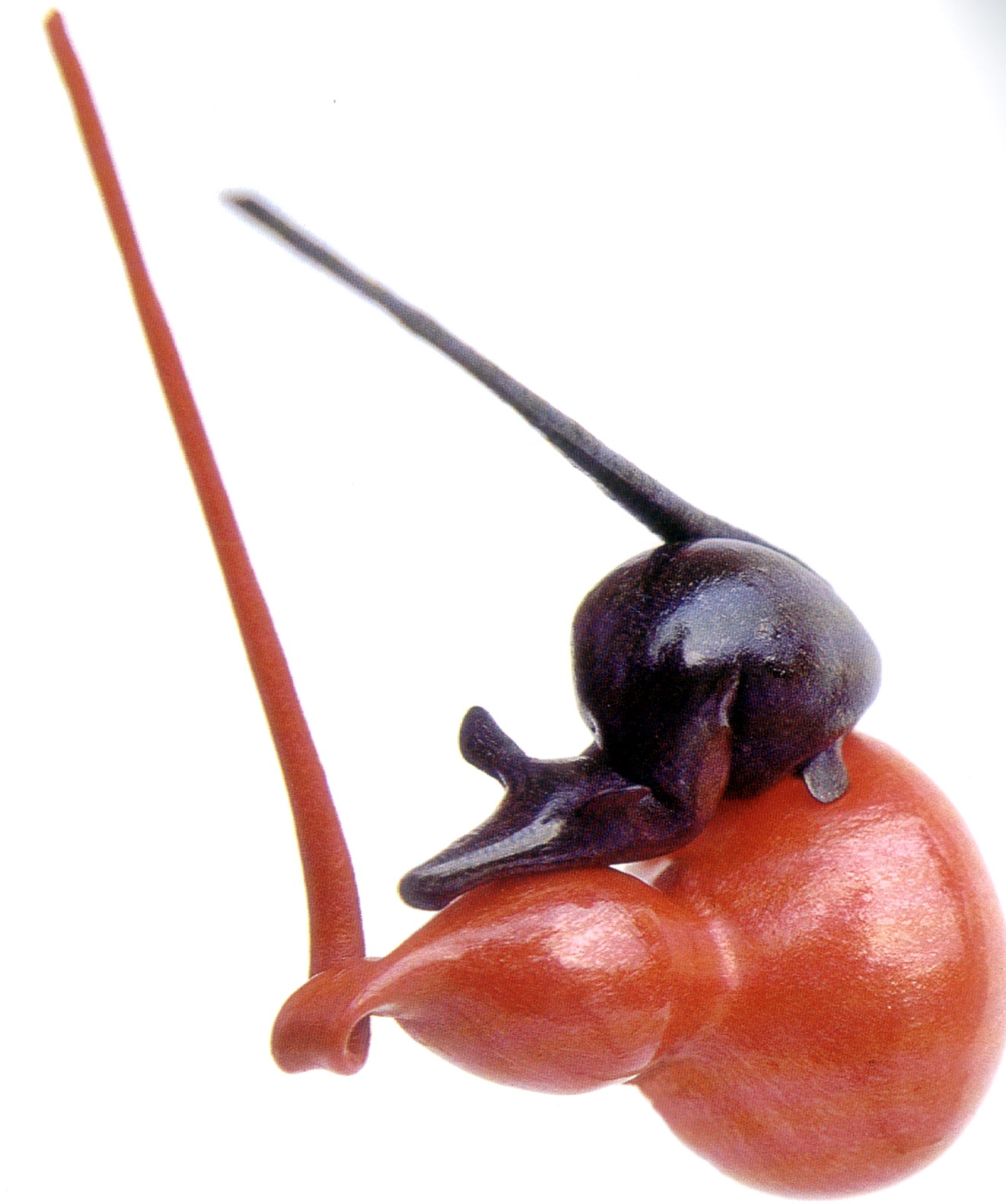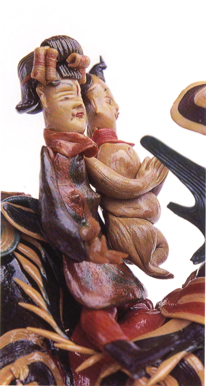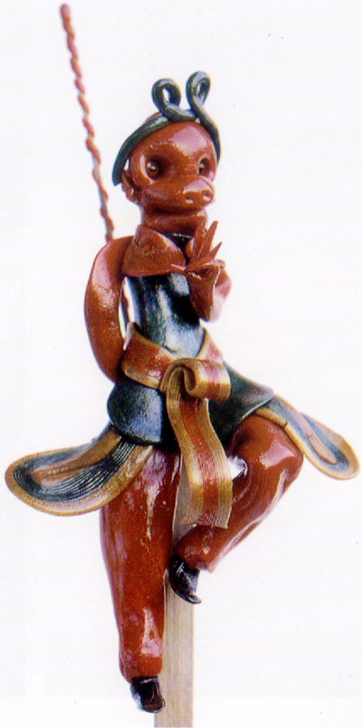 糖塑,俗稱吹糖,在湖北遍及全省,尤以天門最為突出。糖塑之所以贏得人們的喜愛,是因?yàn)樗?dú)具特色:1、原料可塑性強(qiáng):麥芽糖是糖塑的主要原料,加熱后變軟,比面塑更具可塑性,既可吹成薄而亮的各類造型,又可拉成粗細(xì)不同的糖絲。捏成不同形狀的配件,易粘且牢固;2、造型神形兼?zhèn)洌禾撬艿募妓囍饕Ψ蛟凇按怠鄙希粔K糖坯在藝人手中,邊吹邊捏,再通過搓、壓、挑、剪等手段,加上輔助的小鐵絲,少則幾分鐘,多則半小時,一件作品就完成了;3、色彩和諧醒目:麥芽糖加溫變軟加入紅、綠、黃、黑四種色素,根據(jù)需要又可調(diào)和成數(shù)十種復(fù)色,色彩響亮和諧;4、肌理變化豐富是糖塑獨(dú)具的特點(diǎn):在糖塑中,附件變化萬千的肌理又與主體吹成光滑的表面形成鮮明的對比,顯得更加豐富耐看;5、“活”的部件是糖塑的又一特點(diǎn):有的部件裝上自制的鋼絲彈簧,一經(jīng)拿在手中,部件都“活”起來了,更具生氣。